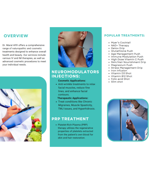 Our Naturopathic Consultation offers a personalized evaluation with a licensed naturopathic doctor. This session includes a thorough assessment of your health concerns, discussion of your medical history, and development of a customized treatment plan. It is designed to address your specific health needs using natural and holistic approaches to improve overall well-being.